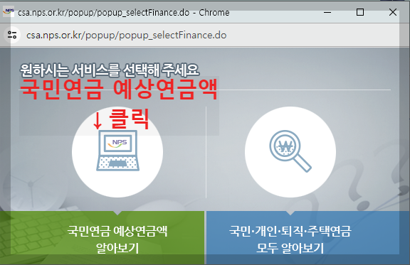 그럼 아래와 같이 예상연금액 조회를 눌러 국민연금 예상연금액 조회를 클릭하여 확인합니다.