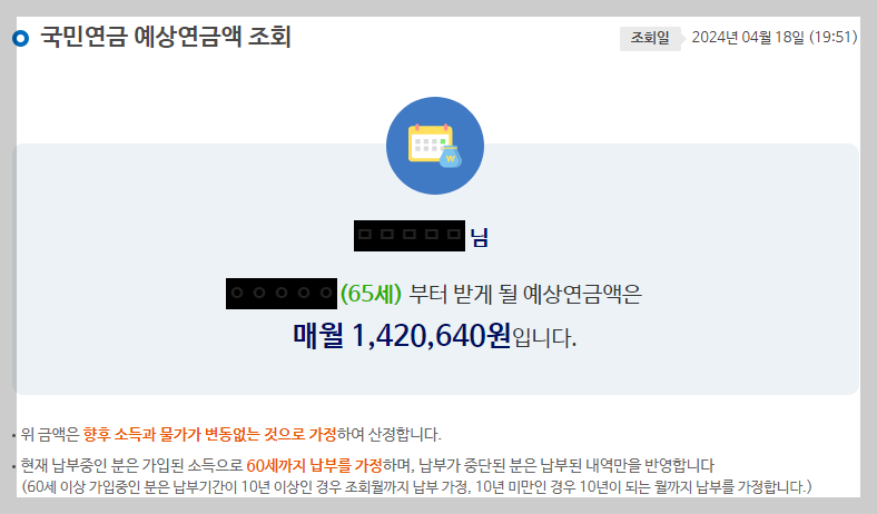 이 때 받는 연금액은 본인의 가입기간 및 가입 중 평균소득액, 전체 가입자의 평균소득액을 기초로 계산됩니다. 참고로, 2022년 12월 기준 20년 이상 가입자들의 평균 노령연금 수령액은 월 98만원 정도라고 하네요.