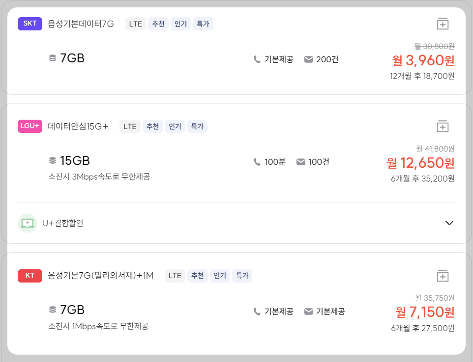 먼저, 알뜰폰을 가입하기 위해 요금제를 찾아야해요. 왜 요금제를 먼저 찾아볼까요? 나에게 맞는 요금제를 찾고 나서 해당 요금제의 사업자 유심을 편의점에서 구매하거나 셀프개통 시 유심을 받을 수 있거든요.