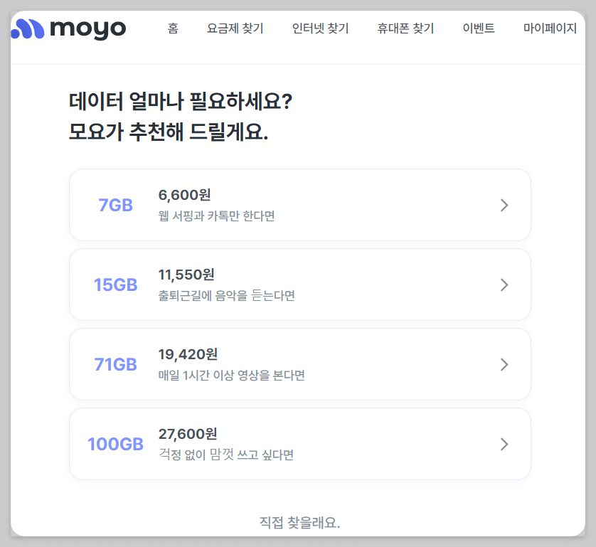 2) 요금제 찾기