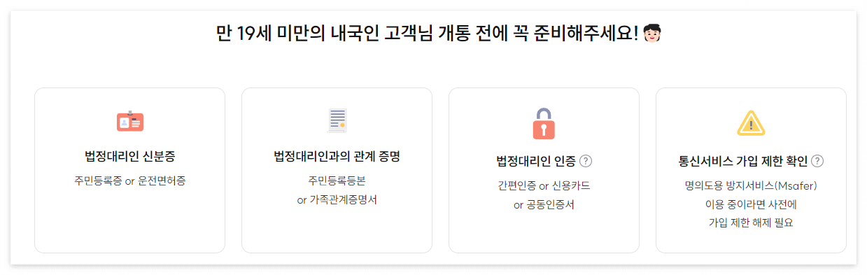 만약 자녀분의 개통을 진행하고자 한다면 아래 서류를 준비해 주세요.