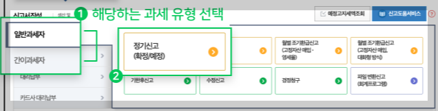 | 2기 확정신고 | 다음 해 1월1~25일 | 7~12월의 사업실적 | |