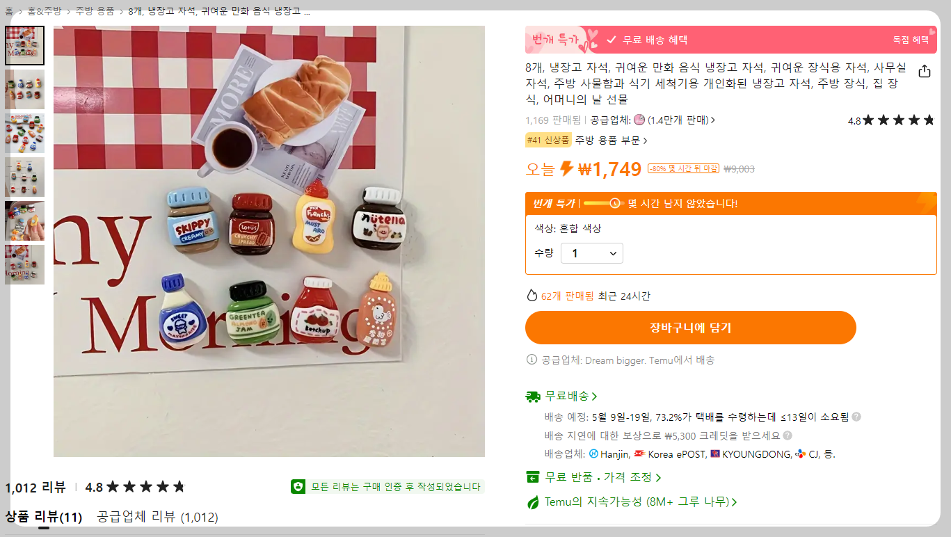 아래 냉장고 자석과 같은거 구매하고자 하시면 테무 이용하시면 됩니다. 훨씬 저렴합니다.