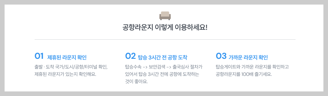 - 발급 받은 라운지 이용권은 발급 후 24시간 동안 유효하며, 시간 내 미사용 시 자동 취소됩니다. 자동 취소된 경우 이용횟수는 자동 복구됩니다.